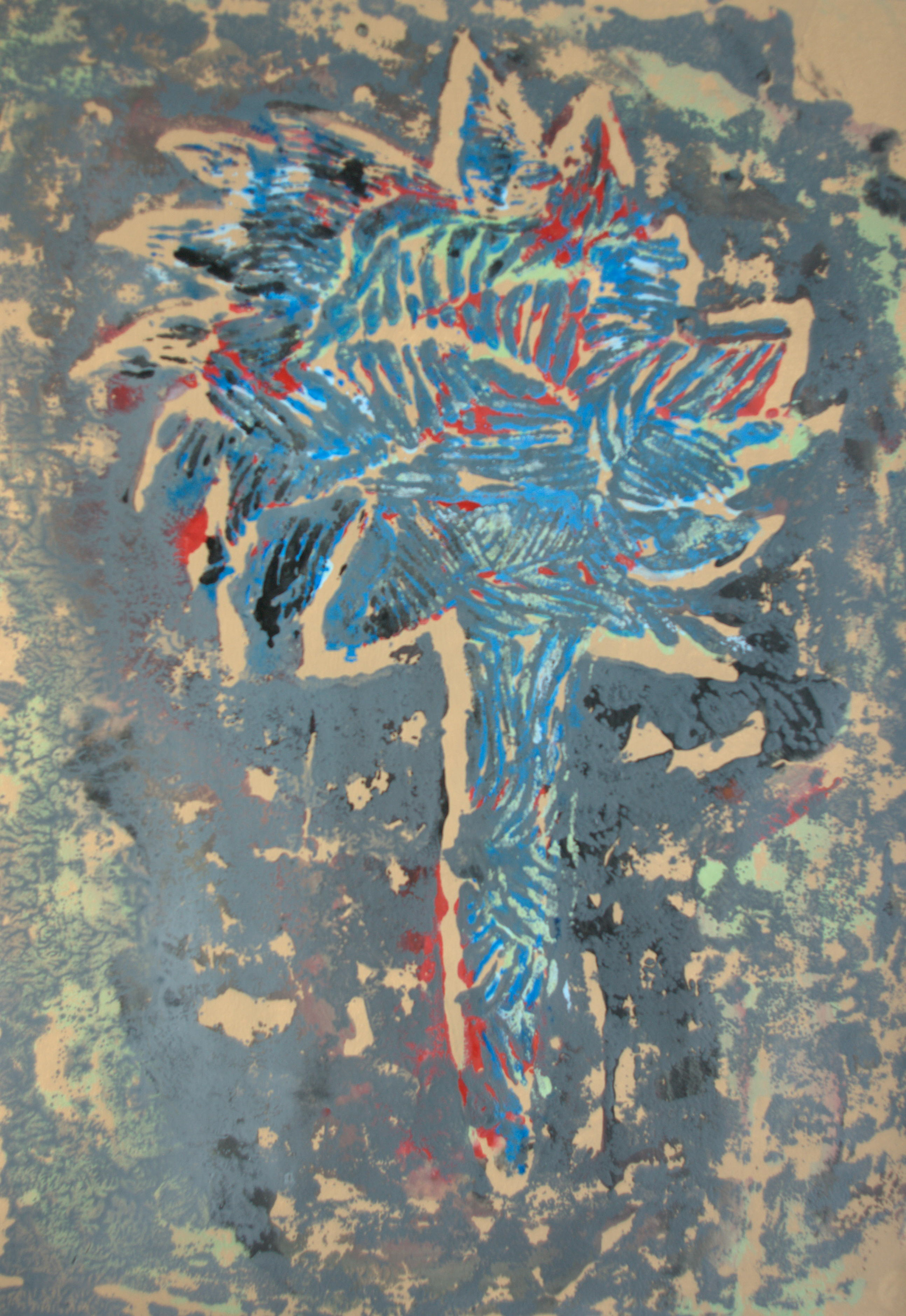 Cette technique de gravure sur polystyrène permet des expressions multiples, en jouant sur la poisse de la peinture, ses effets liquides, des traces estompées. La matrice est utilisée comme un outil sur lequel le pinceau répartit formes et couleurs dans la quête d'une image toujours renouvelée.